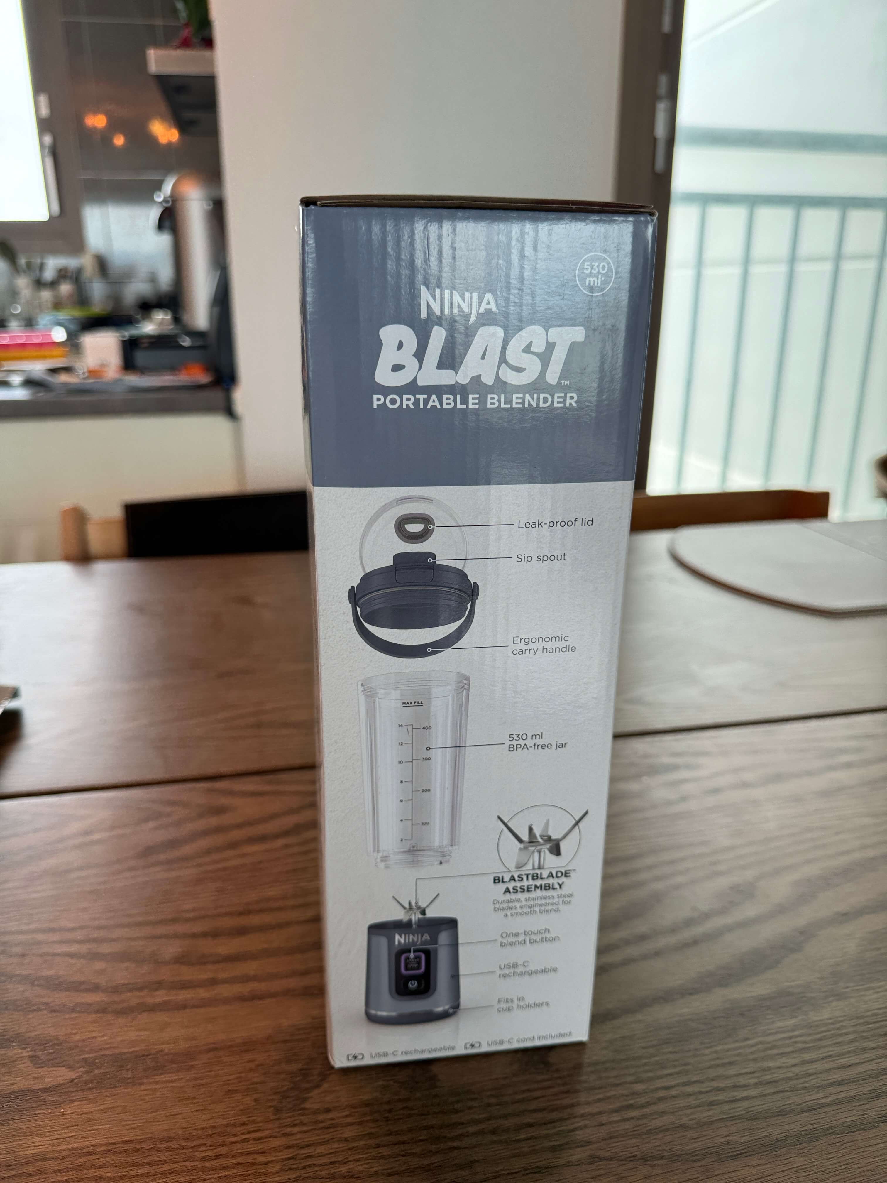 닌자 블라스트 포터블 블렌더라는 공식 이름을 가지고 있는 제품으로, "언제 어디서나 가볍고 자유로운 블렌딩 생활"이라는 카피로 대중들에게 다가가고 있습니다.