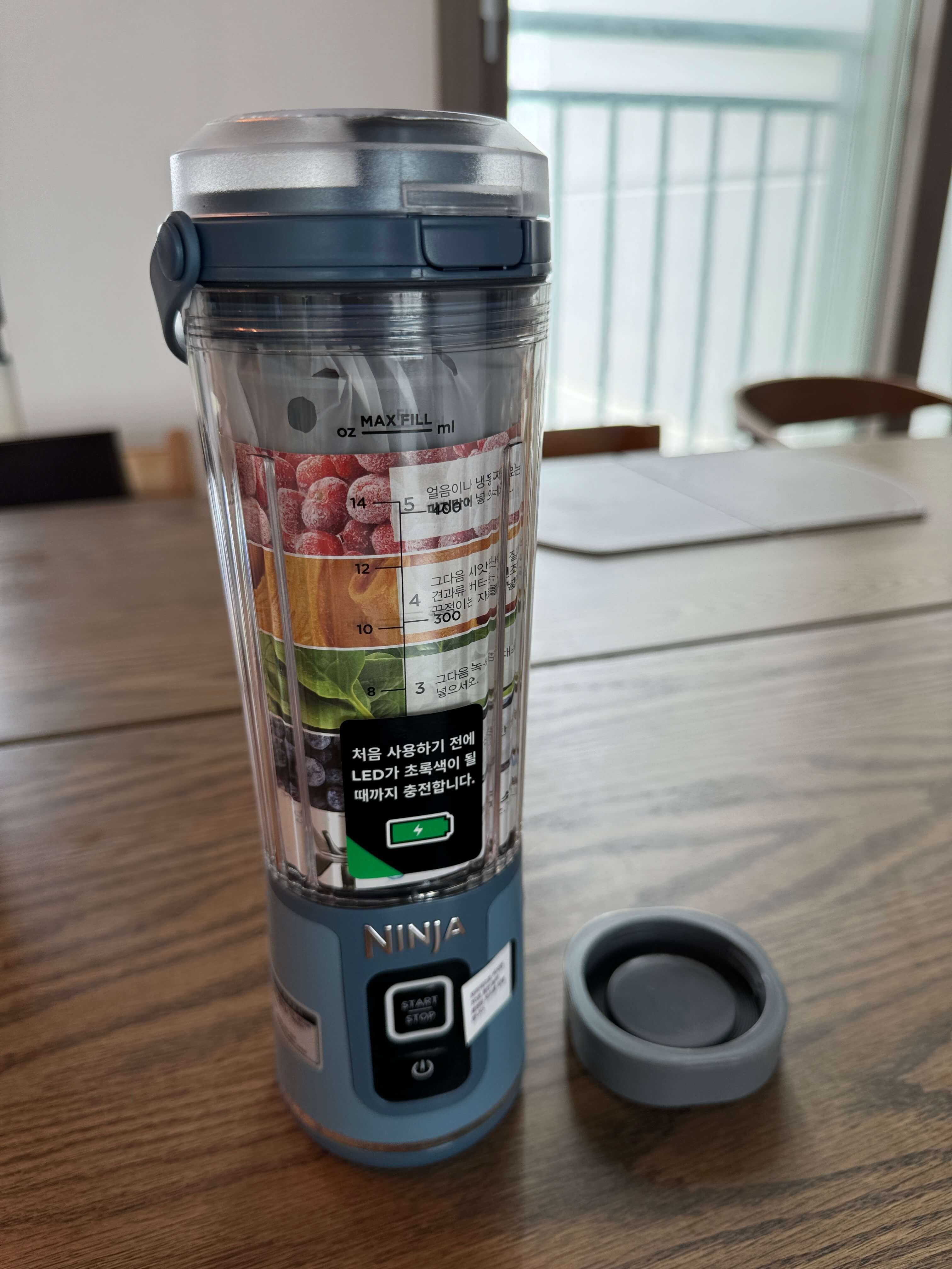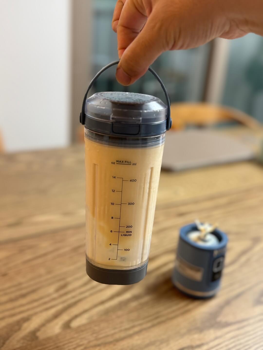 강력한 분쇄력과 2인분 정도의 스무디를 간단하게 만들어 먹을 수 있는 강력함과 편리함을 동시에 갖춘 이 제품 정말 매력적인 거 같습니다. 완충하면 15회 정도 사용가능하다고 하니 야외에서도 신선한 음료를 언제든 먹을 수 있을 거 같습니다.