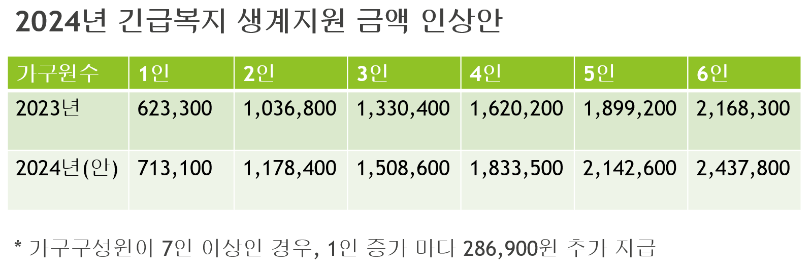 바로 2024년 긴급복지생계지원금이 인상된다는 소식인데요.