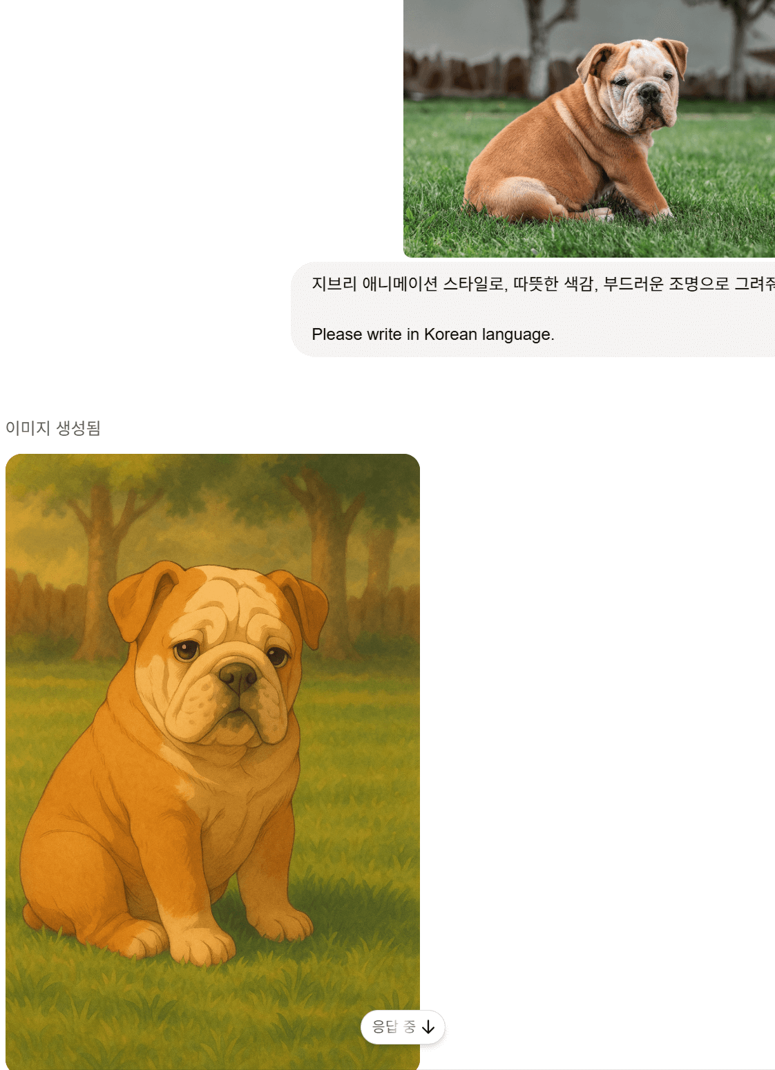- "이 사진을 지브리 스타일로 변환해 주세요."