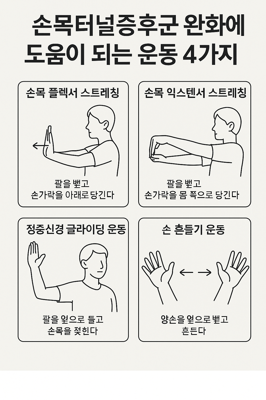 손목터널증후군은 초기 관리가 매우 중요해요. 작은 습관 하나, 짧은 운동 하나가 통증 예방과 회복에 큰 도움이 될 수 있답니다.