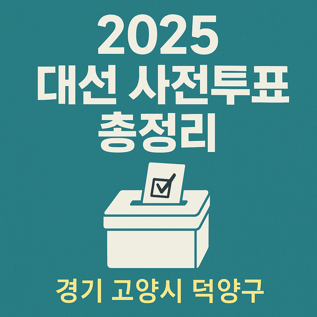 2025년 제21대 대통령선거의 사전투표가 5월 29일(목)과 30일(금) 양일간 오전 6시부터 오후 6시까지 진행됩니다. 경기도 고양시 덕양구에 거주하시는 유권자분들을 위해 사전투표소 정보를 안내해 드립니다.