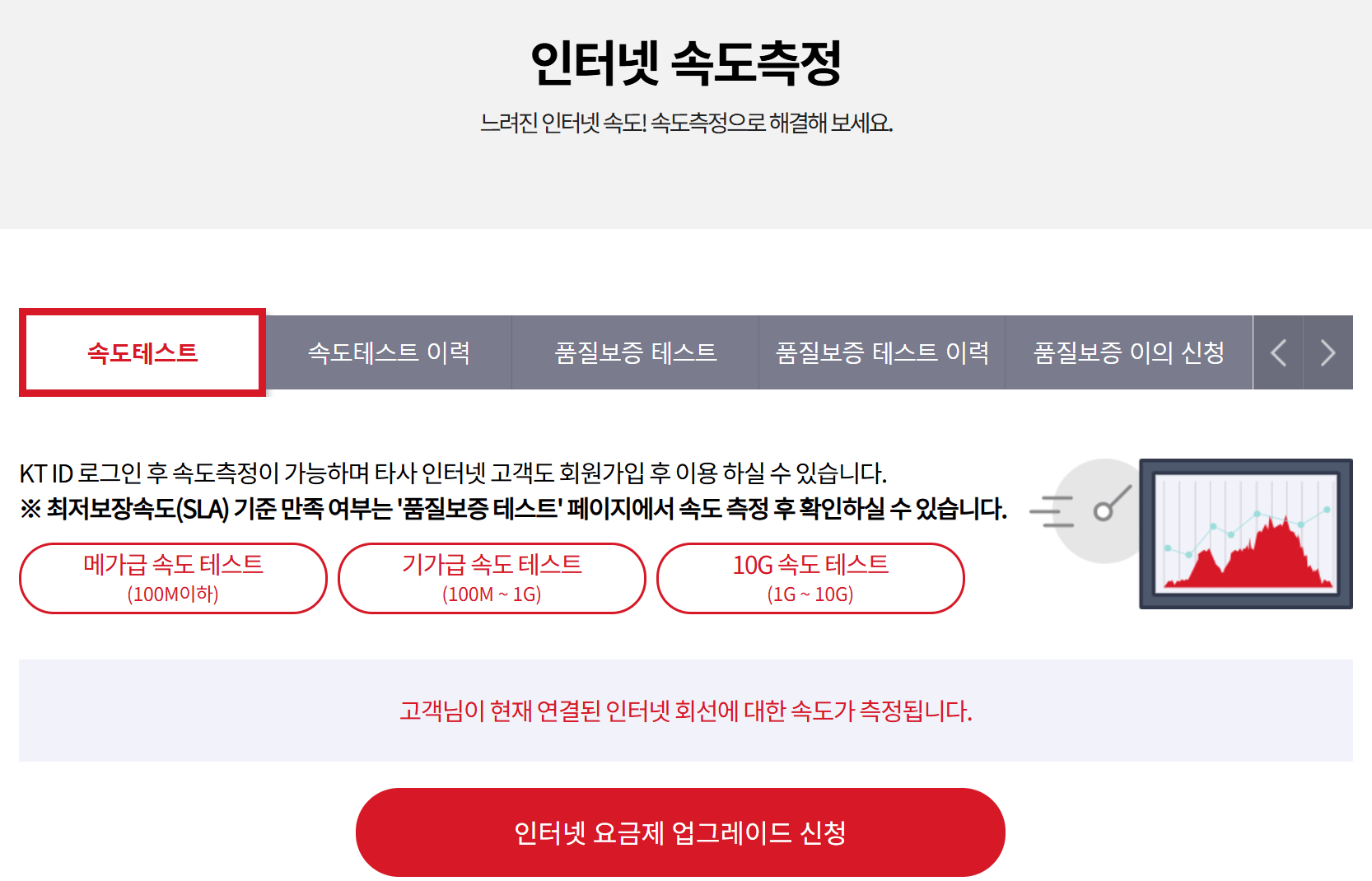 KT에서는 인터넷 속도 측정 서비스를 제공하고 있어요.